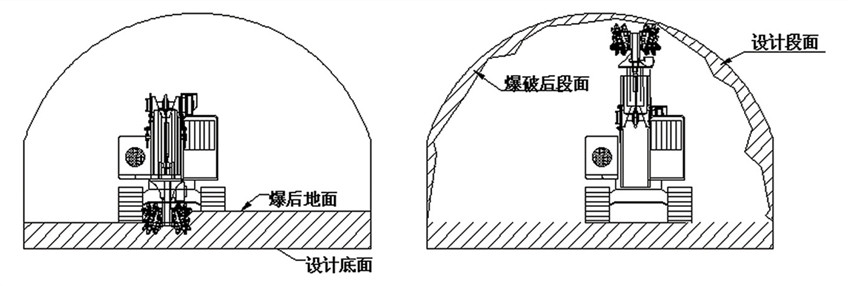 配備銑挖頭後,可在硬度4F的煤巷或半煤巷掘進時工作,無需炮掘。本機帶有快速連接器,岩巷掘進時挖鬥和銑挖頭互換,爆破後用挖鬥裝渣,實現了一機兩用;